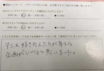 「アニメ好きの人たちが集まる」パーティーですね