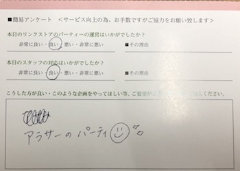 パーティーはいかがでしょうか?楽しんでいただけましたでしょうか?
