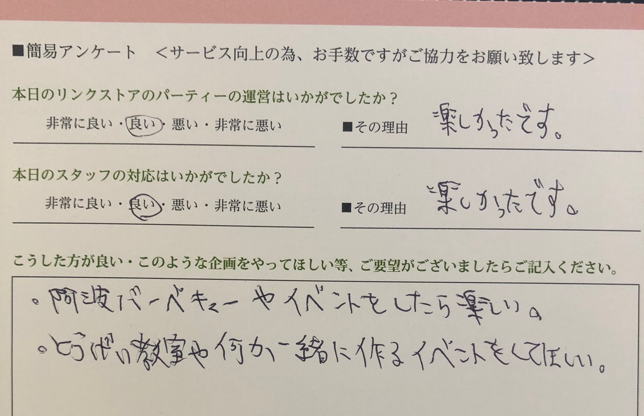 この度リンクストア徳島エリアのパーティーにご参加いただきまして誠にありがとうございます