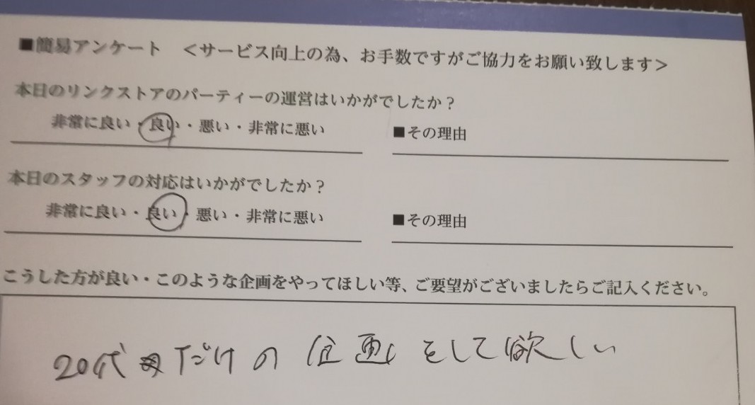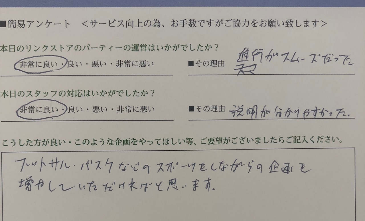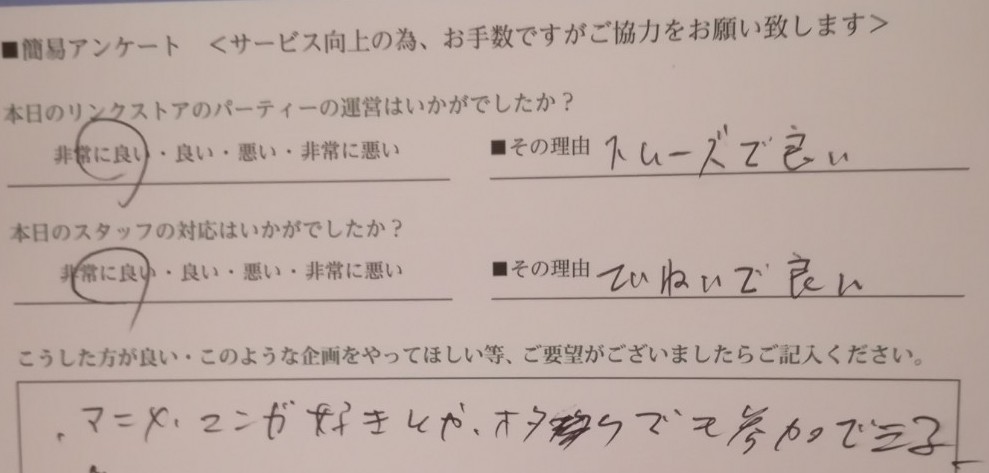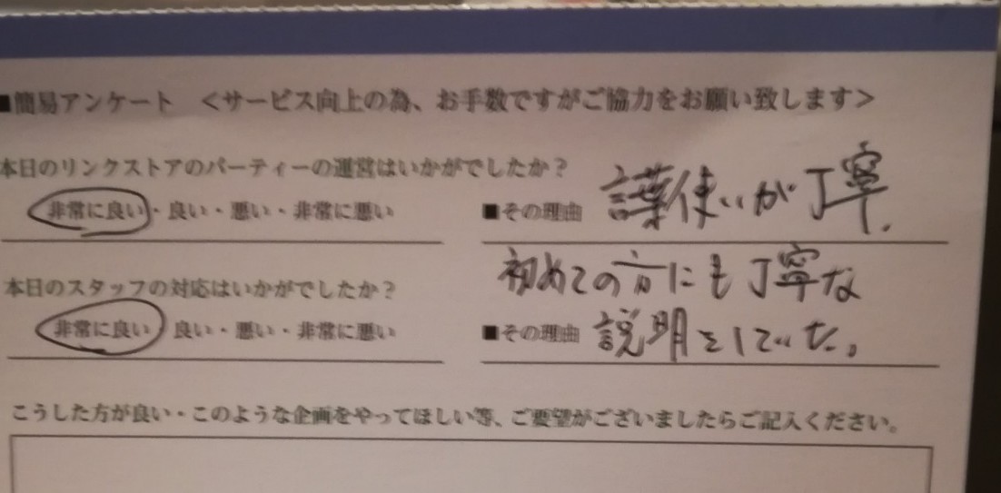 この度は、リンクストアのパーティーに初めてご参加いただきまして