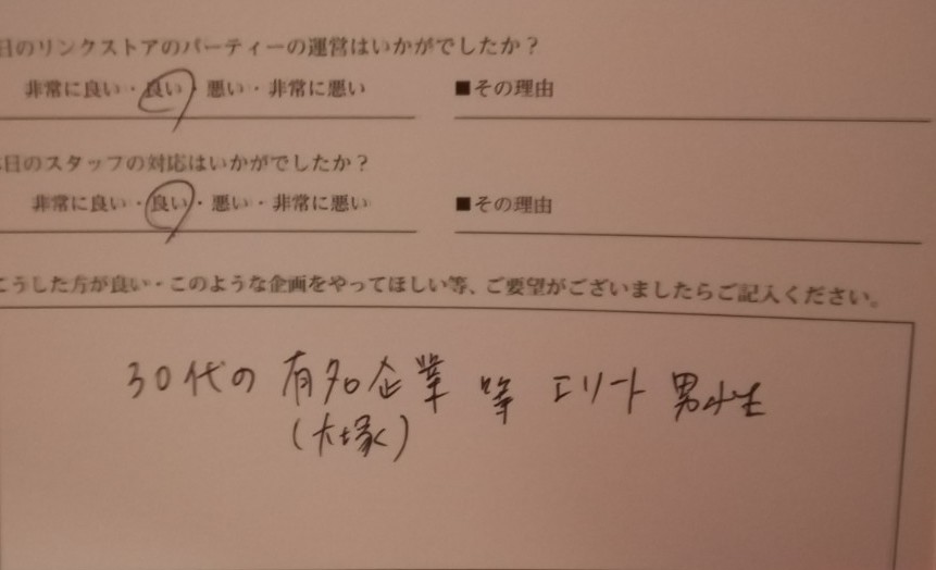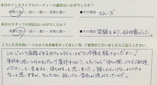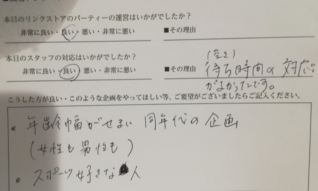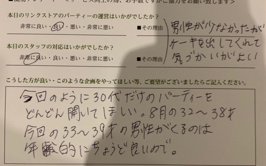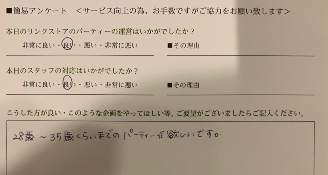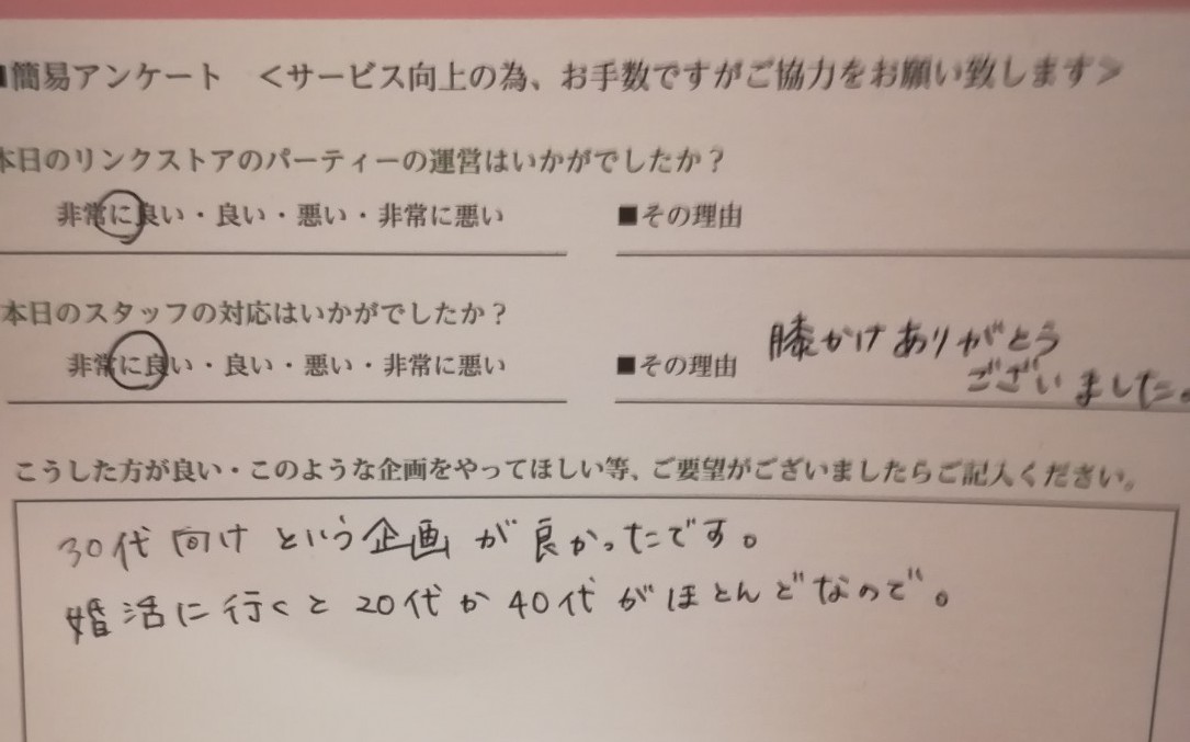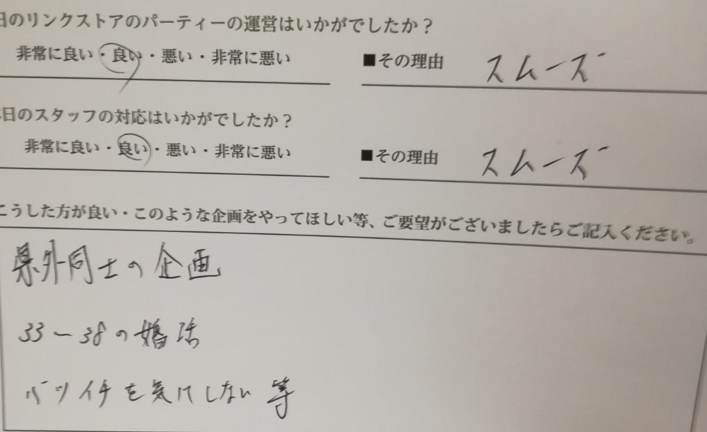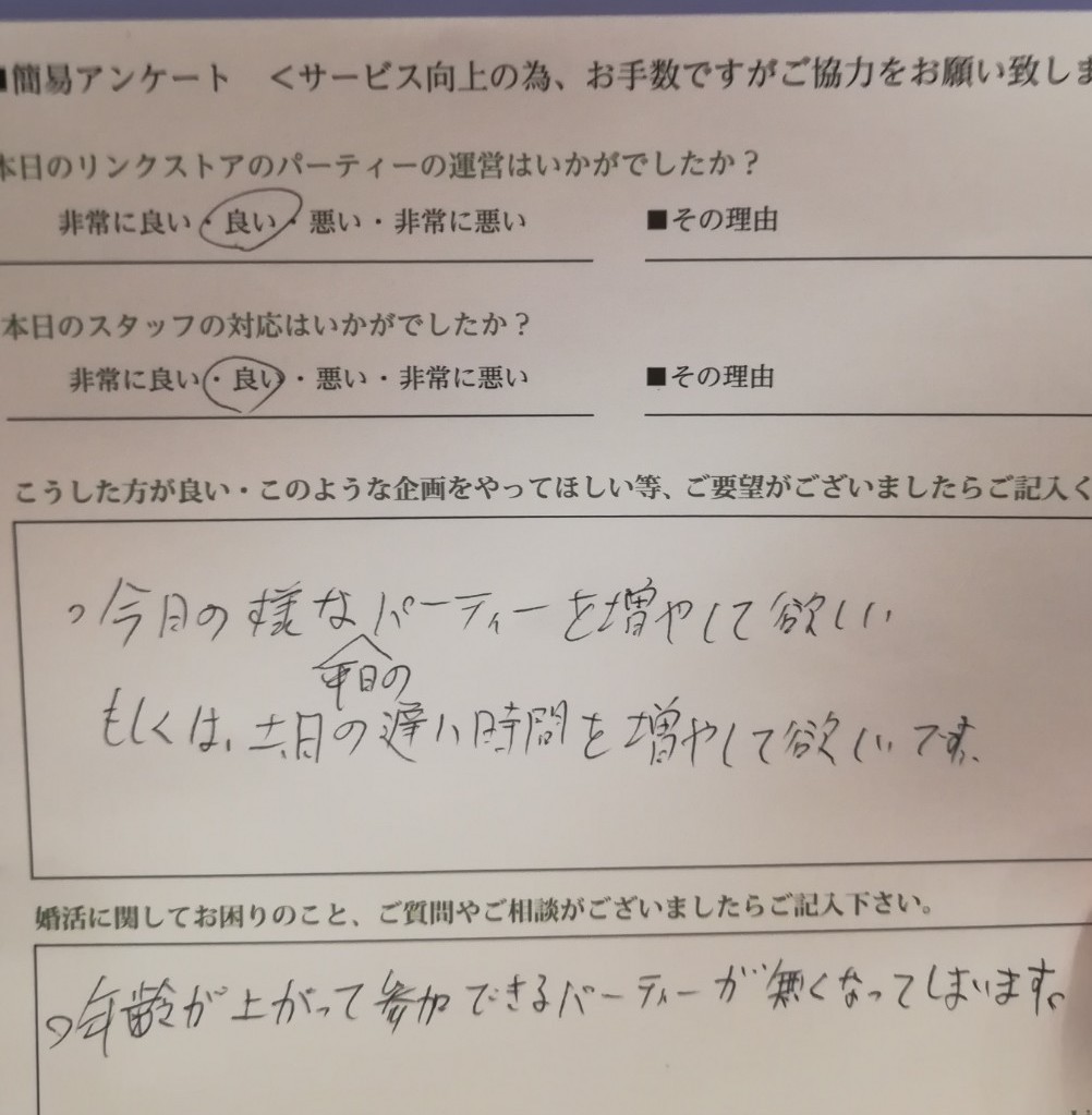 お見合い・婚活パーティーのお客様の声(口コミ)