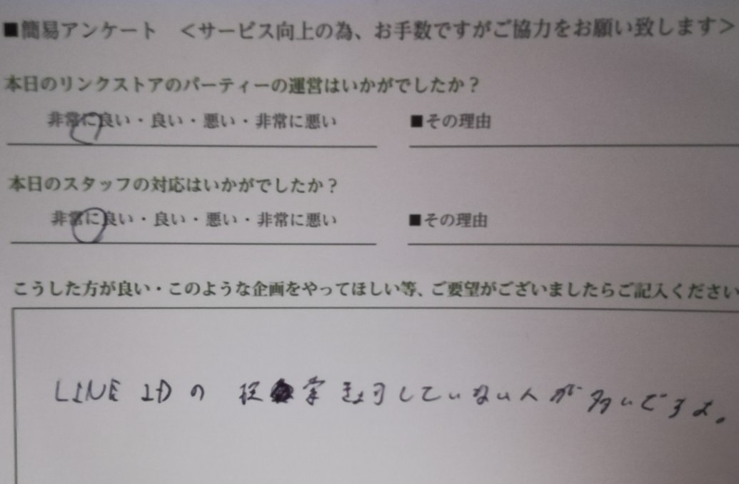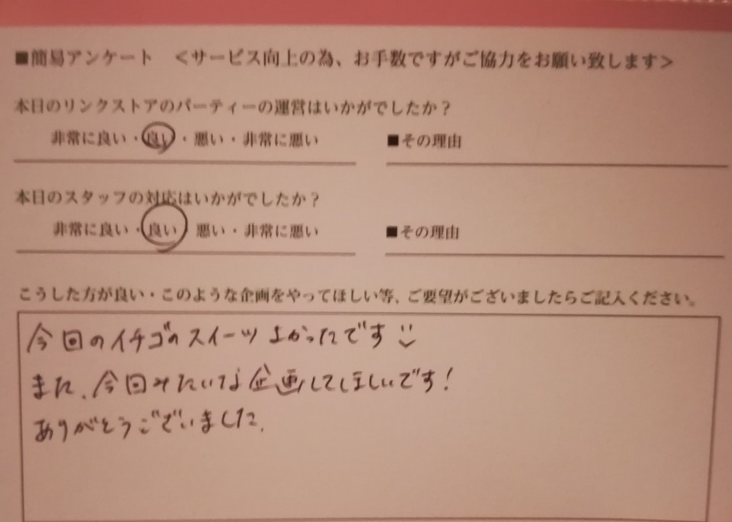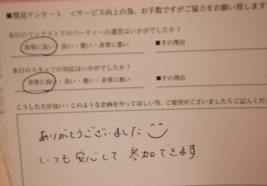 この度はリンクストアのパーティーにご参加いただきましてありがとうございます
