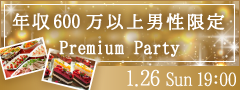 1月26日(日)19:00 <Max20:20>年収600万以上男性限定♪Premium Big Party〜特製ビュッフェ〜
