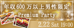 02/22(土)19:00~<Max20:20>年収600万以上男性限定♪Premium Big Party〜特製ビュッフェ〜