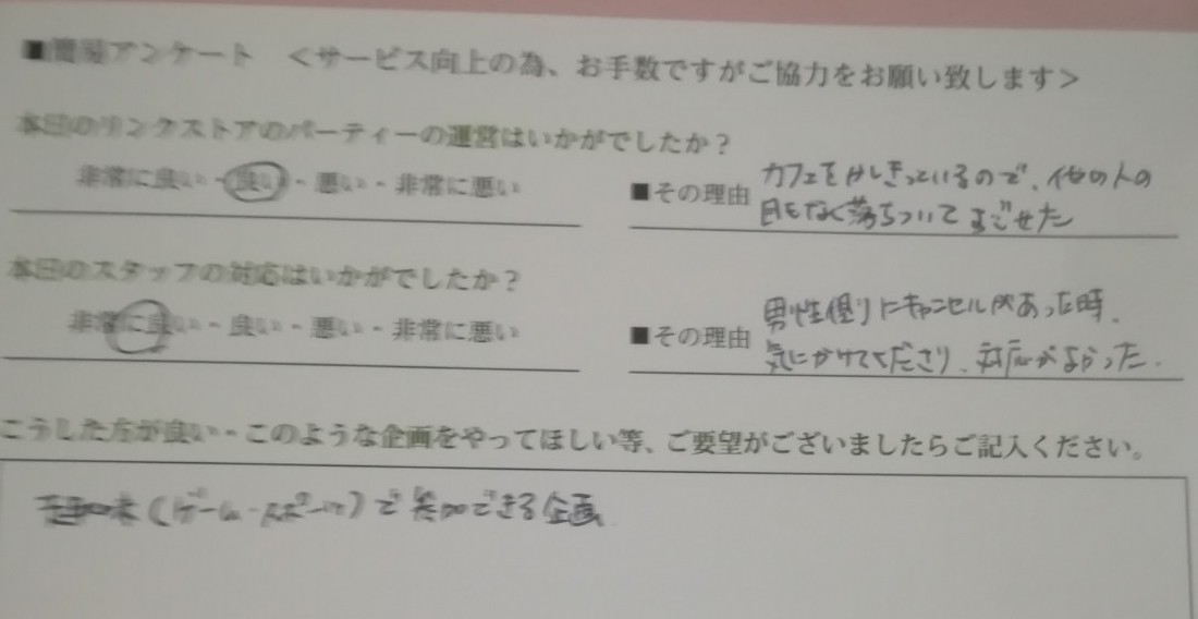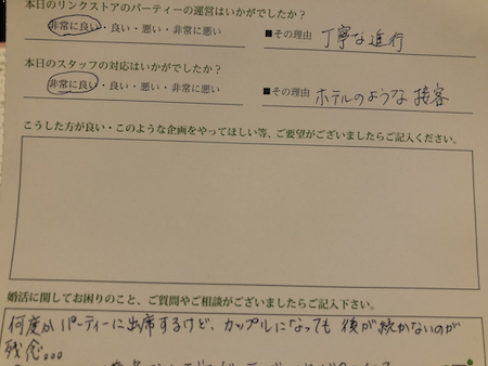 お見合い・婚活パーティーのお客様の声(口コミ)