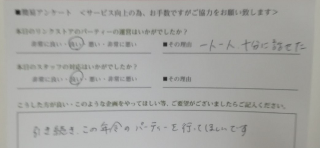 この度、リンクストアのパーティーにご参加いただきまして