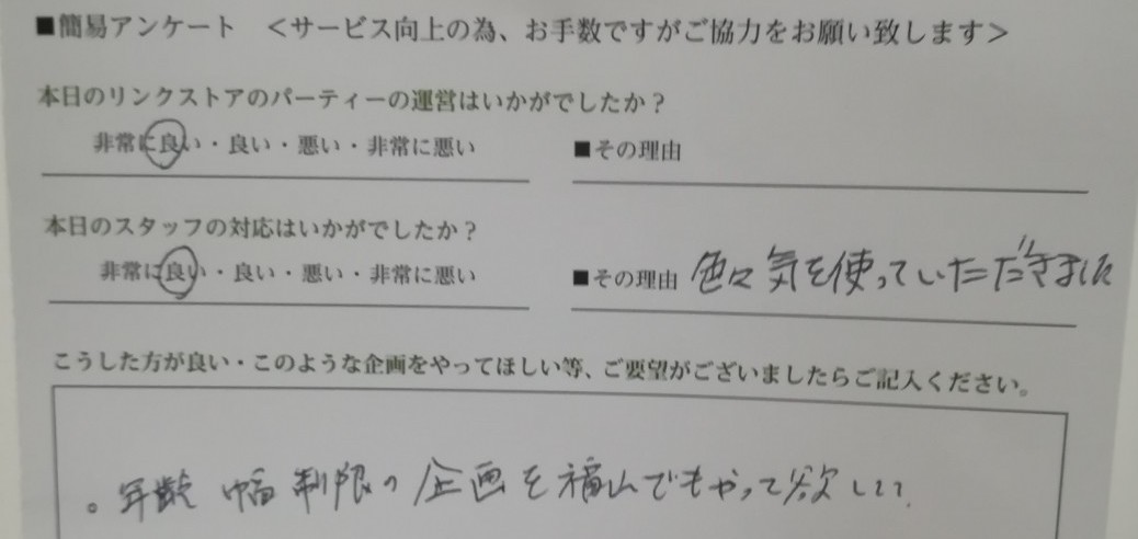 リンクストア 福山エリアの婚活パーティーにご参加いただきまして