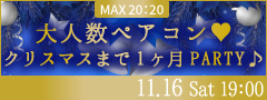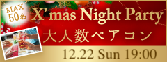 2019-12-22(日)19:00〜 <MAX50名>X’mas Night Party☆大人数ペアコン☆〜アルコール飲み放題付き〜