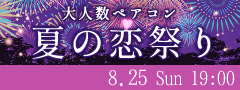 2019-08-25 日 19:00:00 《Max40名》浴衣で夏の恋祭り♪大人数ペアコン〜アルコール飲み放題付き〜