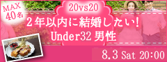 2019年8月3日(土)20:00〜 <MAX20:20>2年以内に結婚したい!Under32男性 〜スイーツ付き〜