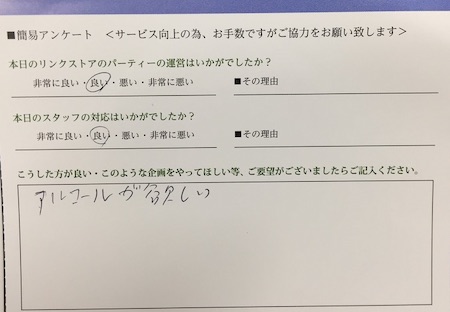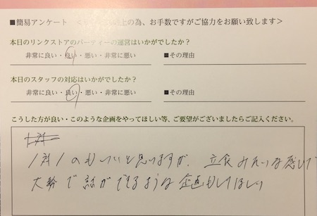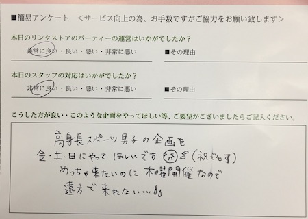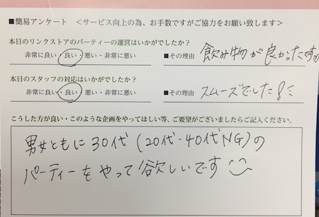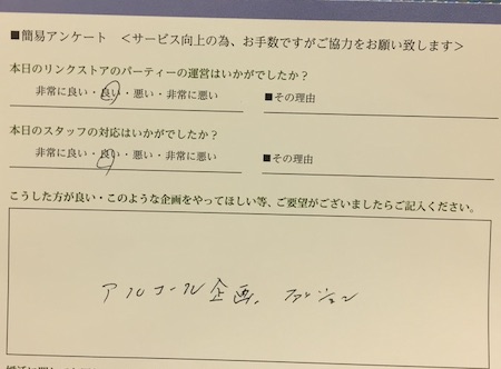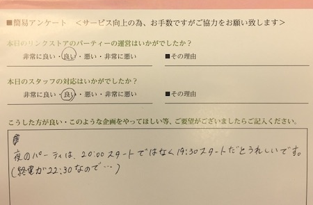 ご参加頂いたパーティーがご要望に添えられなかったのでしょうか