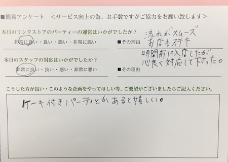 リンクストアでは、皆さまにご満足いただけるようたくさんのテーマのパーティーを開催しております