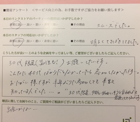 お見合い・婚活パーティーのお客様の声(口コミ)