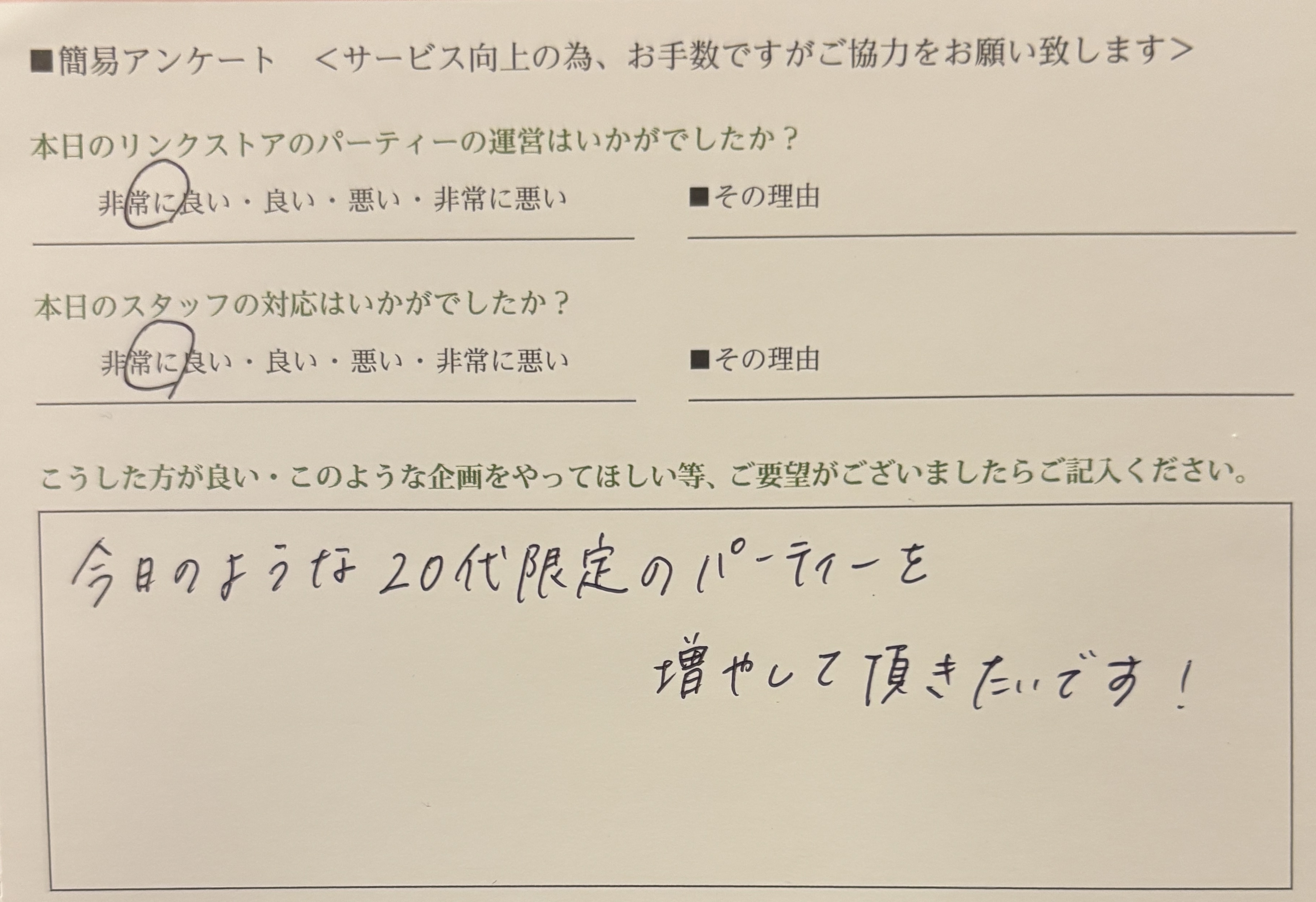 この度はリンクストア愛媛の婚活パーティーにご参加いただきまして誠にありがとうございます