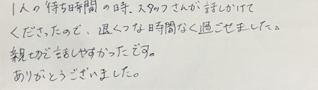 少しでも緊張を和らげたいと考えている私たちスタッフもそのお言葉で安心いたしました