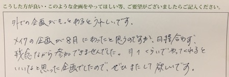 また高松市以外でもたくさん開催できるよう検討しておりますので