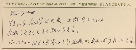 また他の会場での開催の場合もご希望等、ございましたらメニューについて検討させていただきますので