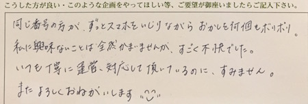 目の前のお客様だけでなく、参加されている全員の方の目を意識して向き合っている姿勢は異性からも、同性からもかなり