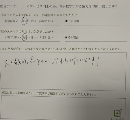この度はリンクストア 岡山エリアの婚活パーティーへご参加いただきまして誠にありがとうございます