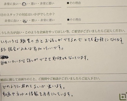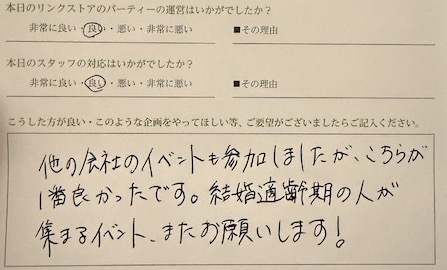 お見合い・婚活パーティーのお客様の声(口コミ)