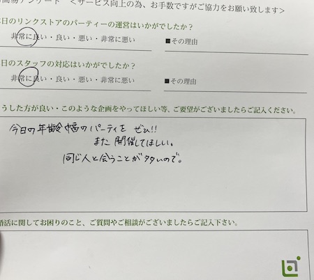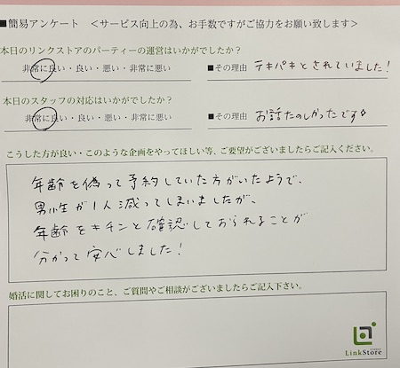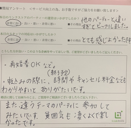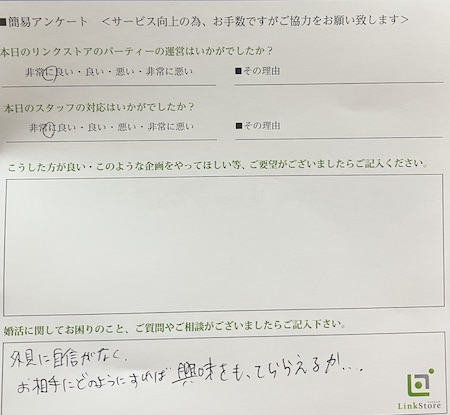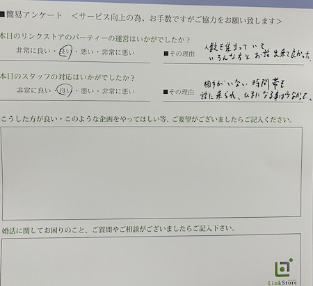 この度はリンクストア 岡山エリアの婚活パーティーへご参加いただきまして誠にありがとうございます