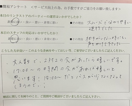 お見合い・婚活パーティーのお客様の声(口コミ)