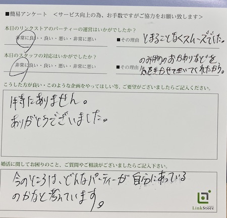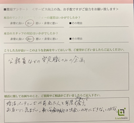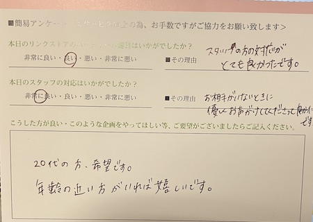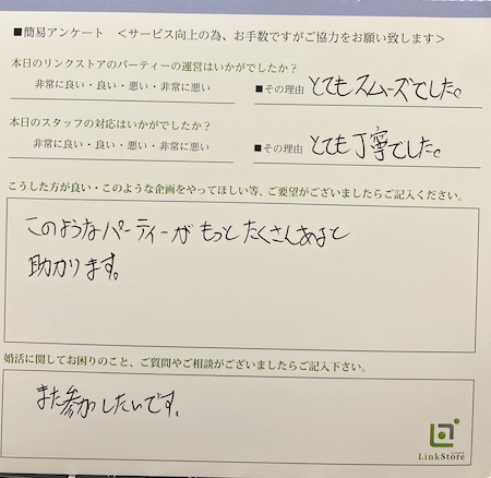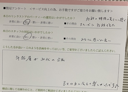 お見合い・婚活パーティーのお客様の声(口コミ)