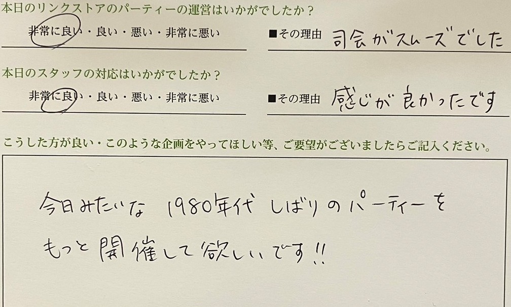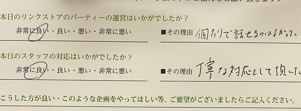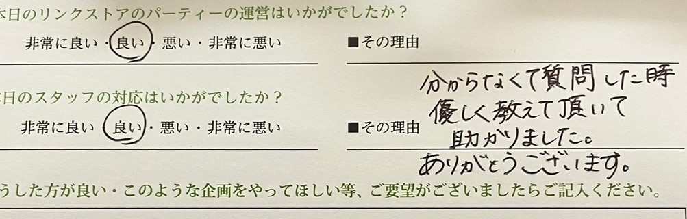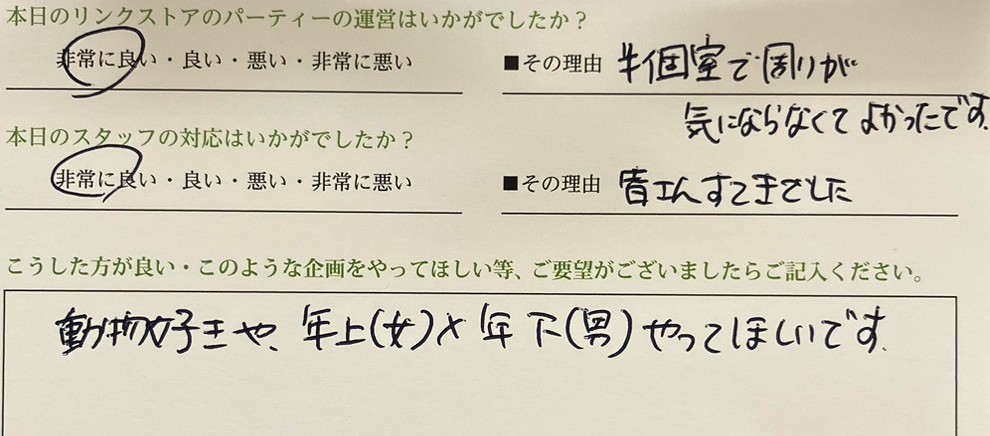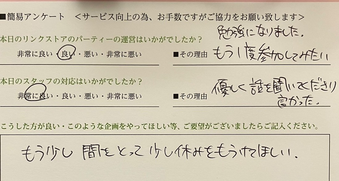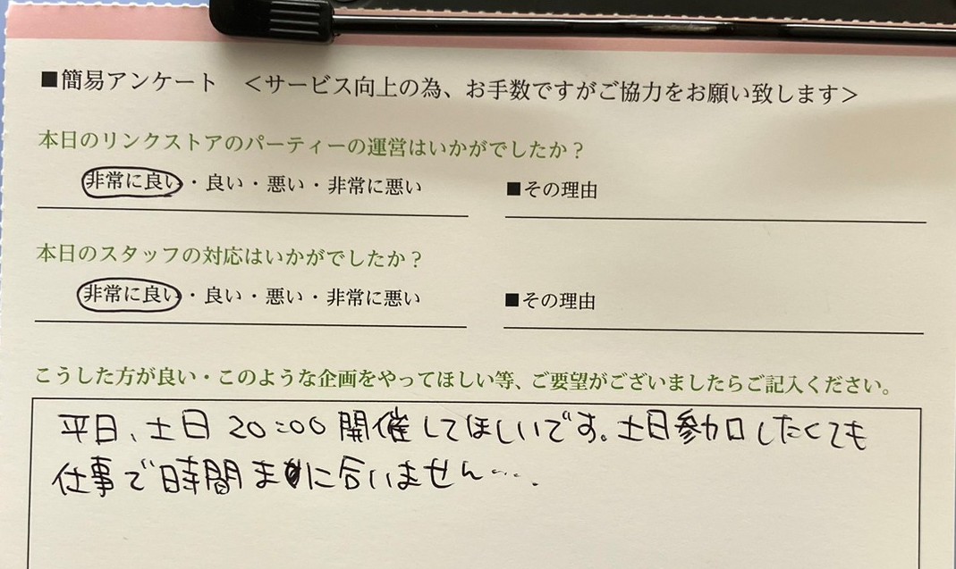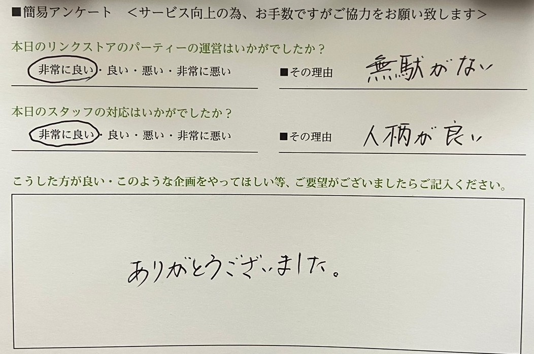 この度はリンクストア高知の婚活パーティーにご参加いただきまして誠にありがとうございます