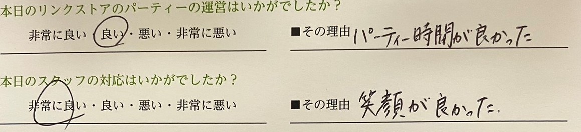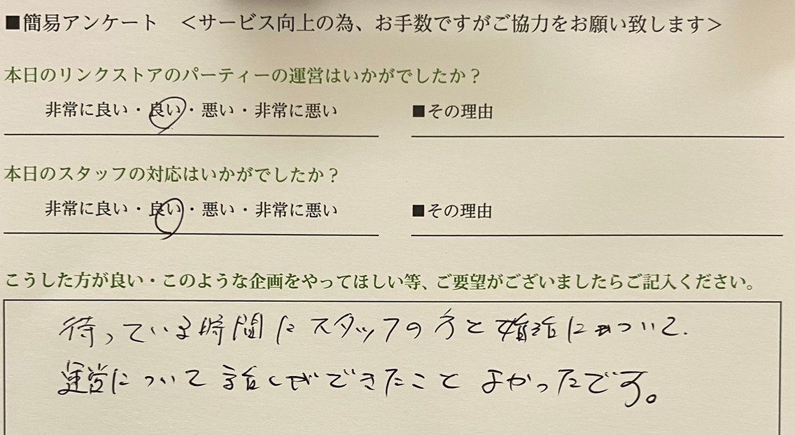 この度はリンクストア高知エリアのパーティーのご参加ありがとうございます