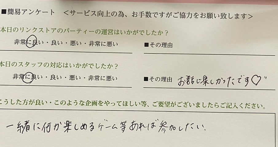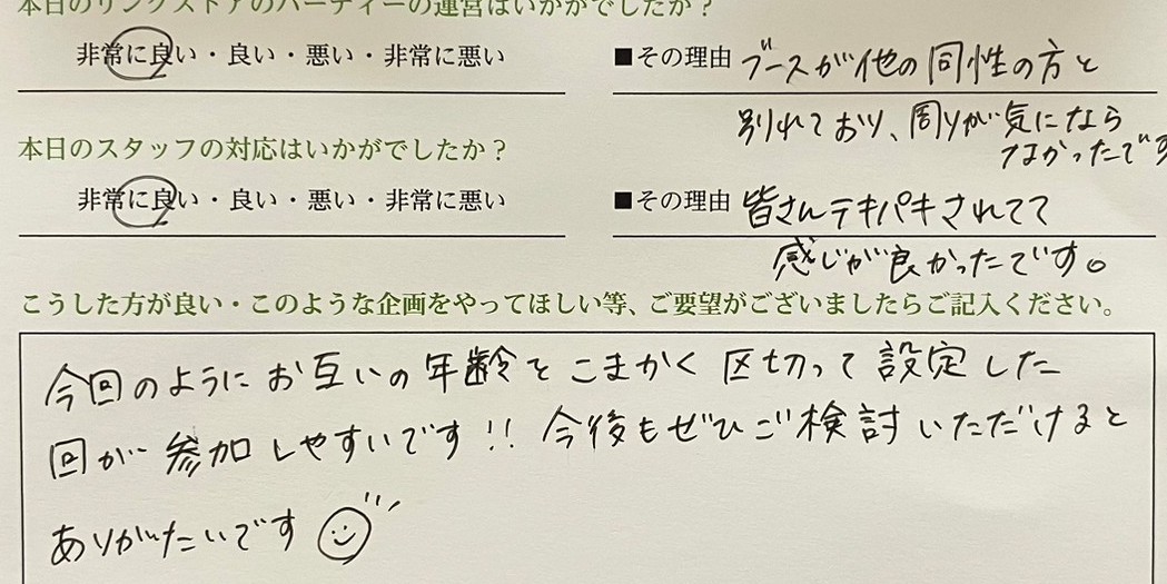 今回の婚活パーティーは楽しめていただけましたでしょうか