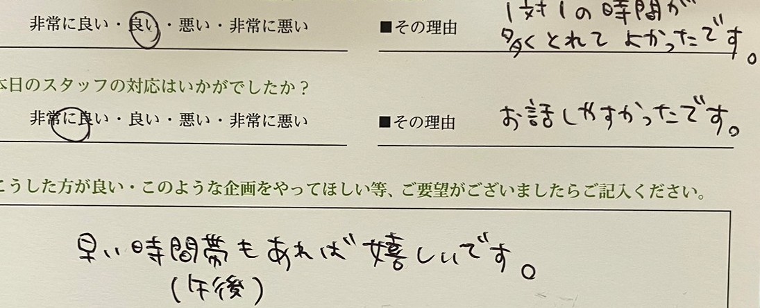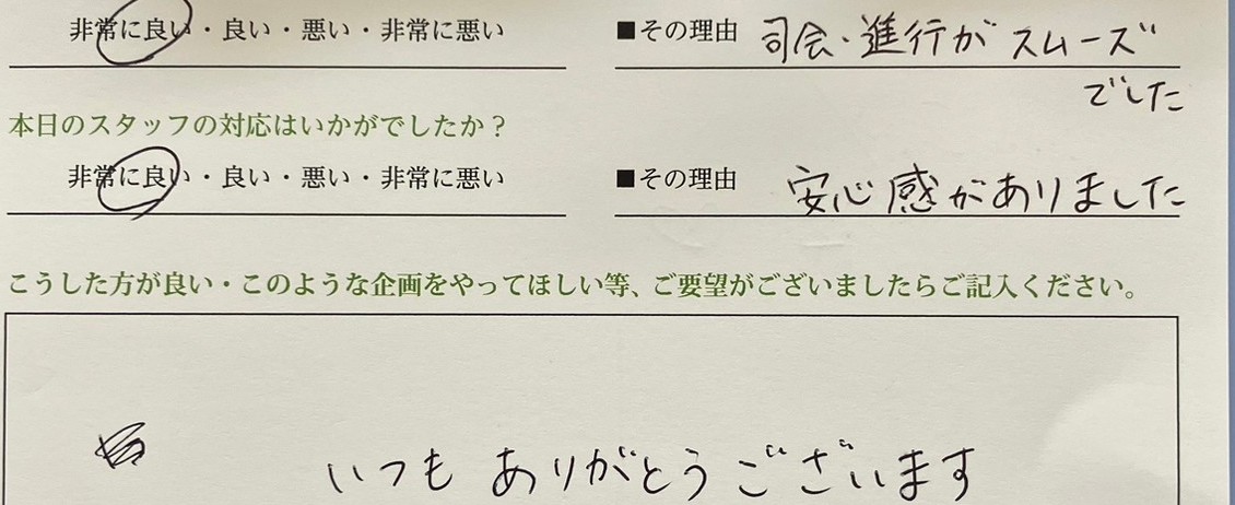 また、進行やスタッフにつきましても満足していただけたようで嬉しいです^^