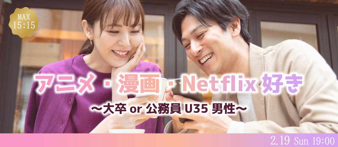 <MAX15:15>趣味コン★アニメ・漫画・Netflix好き♪〜大卒or公務員U35男性編〜