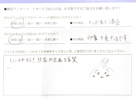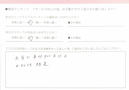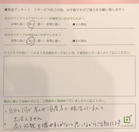 この度はリンクストア 愛媛エリアの婚活パーティーへご参加いただきまして誠にありがとうございます