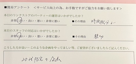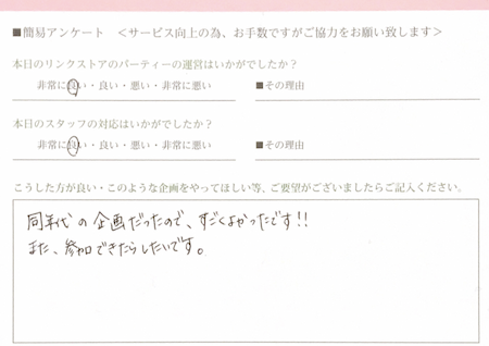 ご提案いただきました、年齢幅を絞ったパーティーをご用意させていただきました