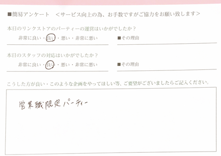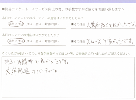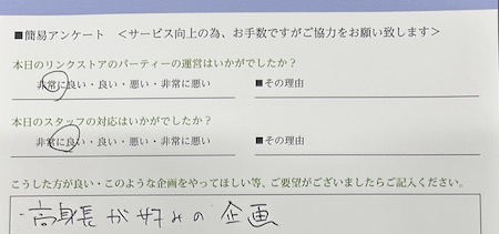今回はリンクストア愛媛のパーティーにご参加いただきありがとうございます