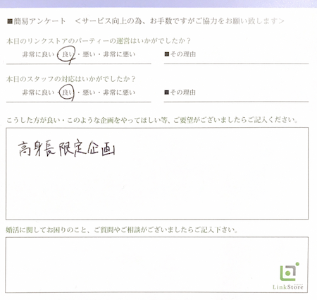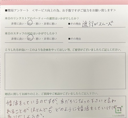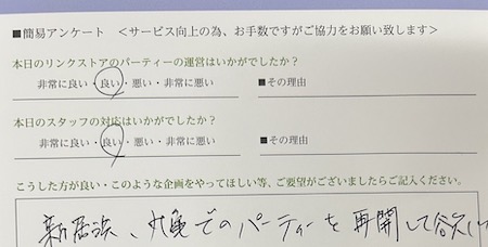 この度はリンクストア愛媛の婚活パーティーにご参加いただきまして
