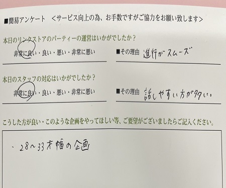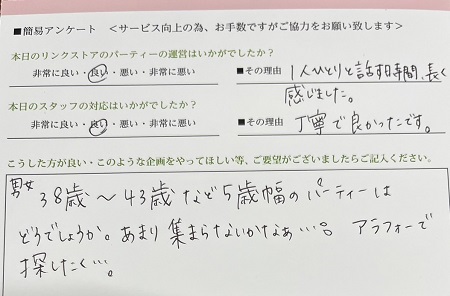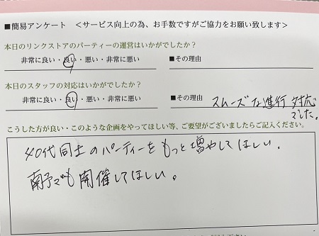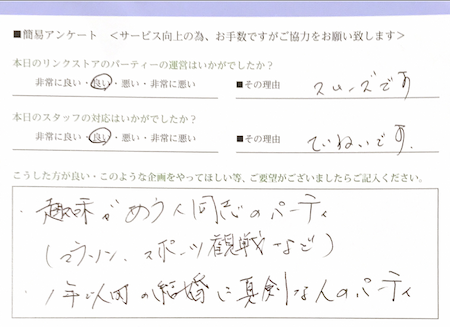 お見合い・婚活パーティーのお客様の声(口コミ)