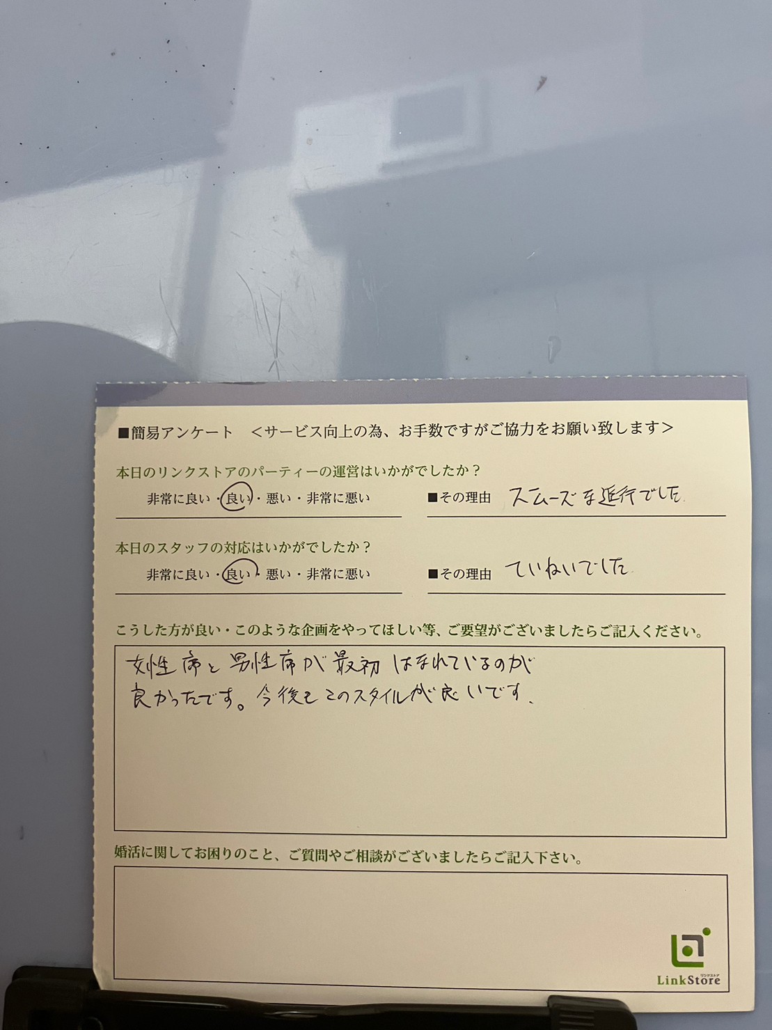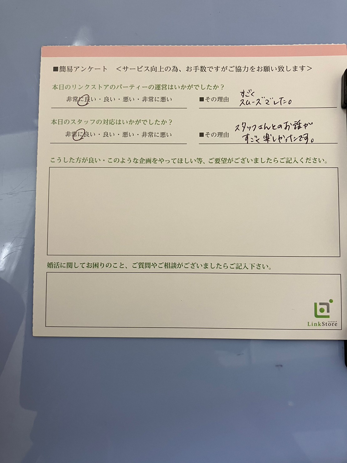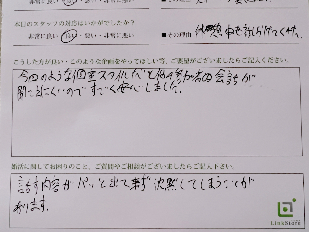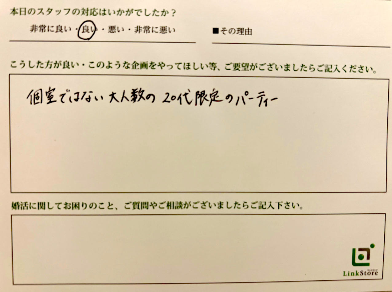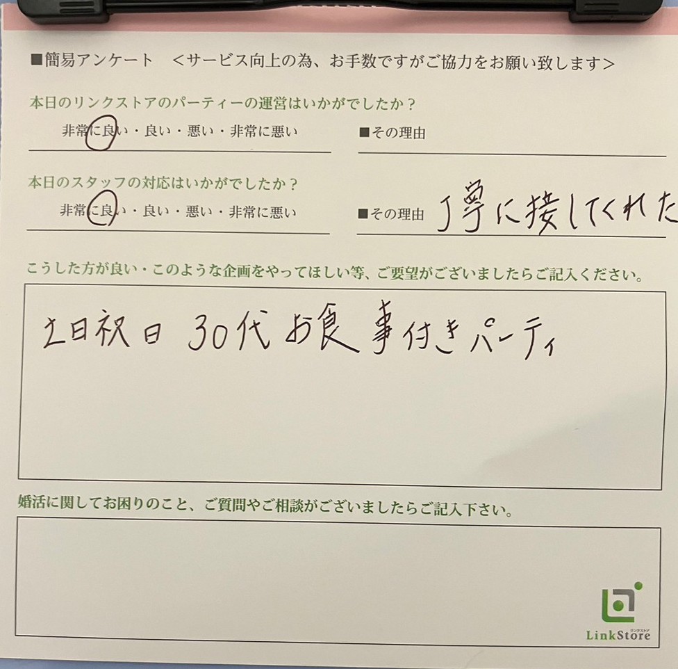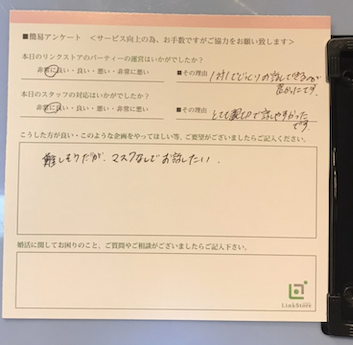 この度はリンクストア 高知エリア婚活パーティーご参加いただきましてありがとうございます