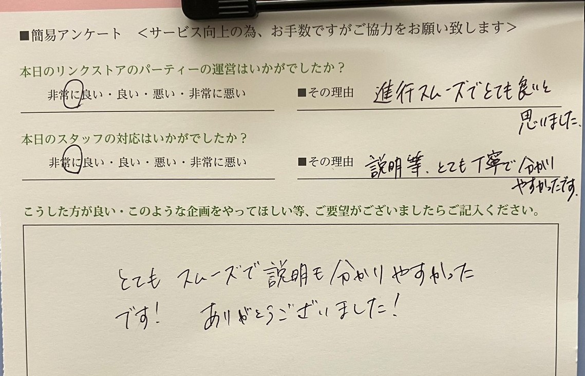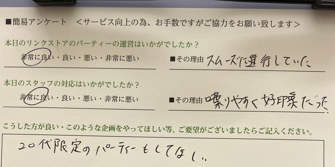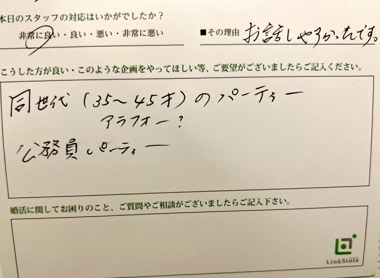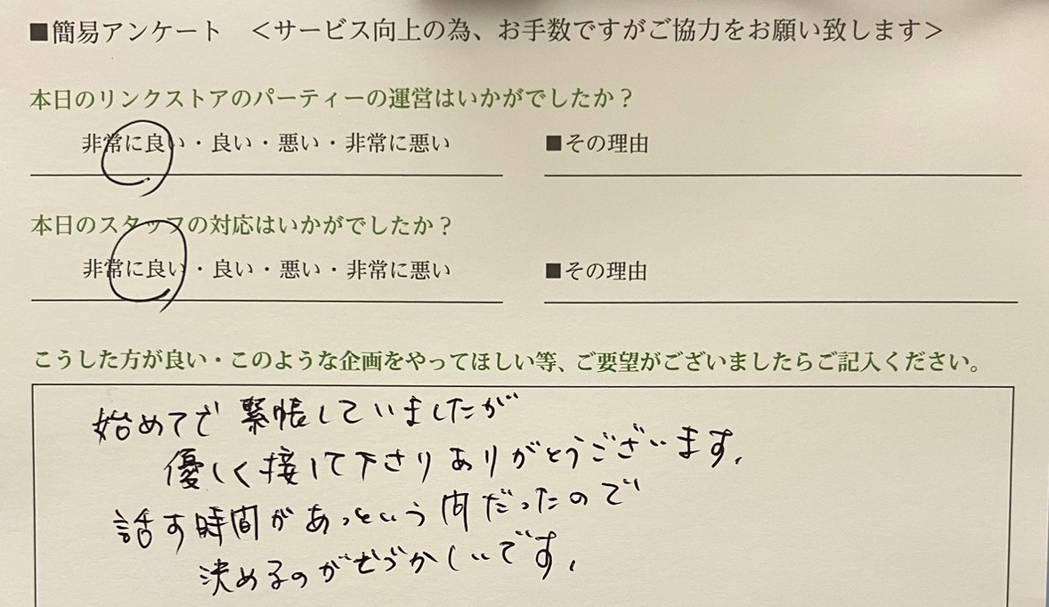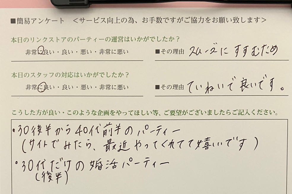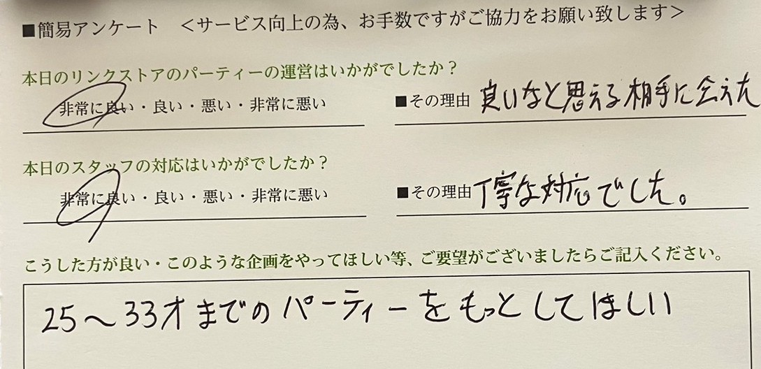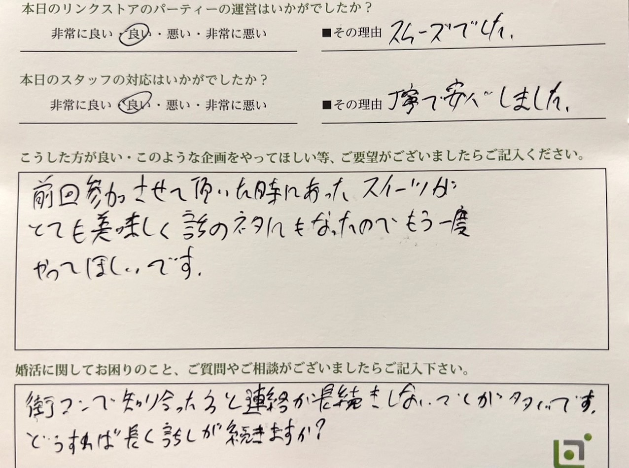 この度はリンクストア高知の婚活パーティーにご参加いただきまして誠にありがとうございます
