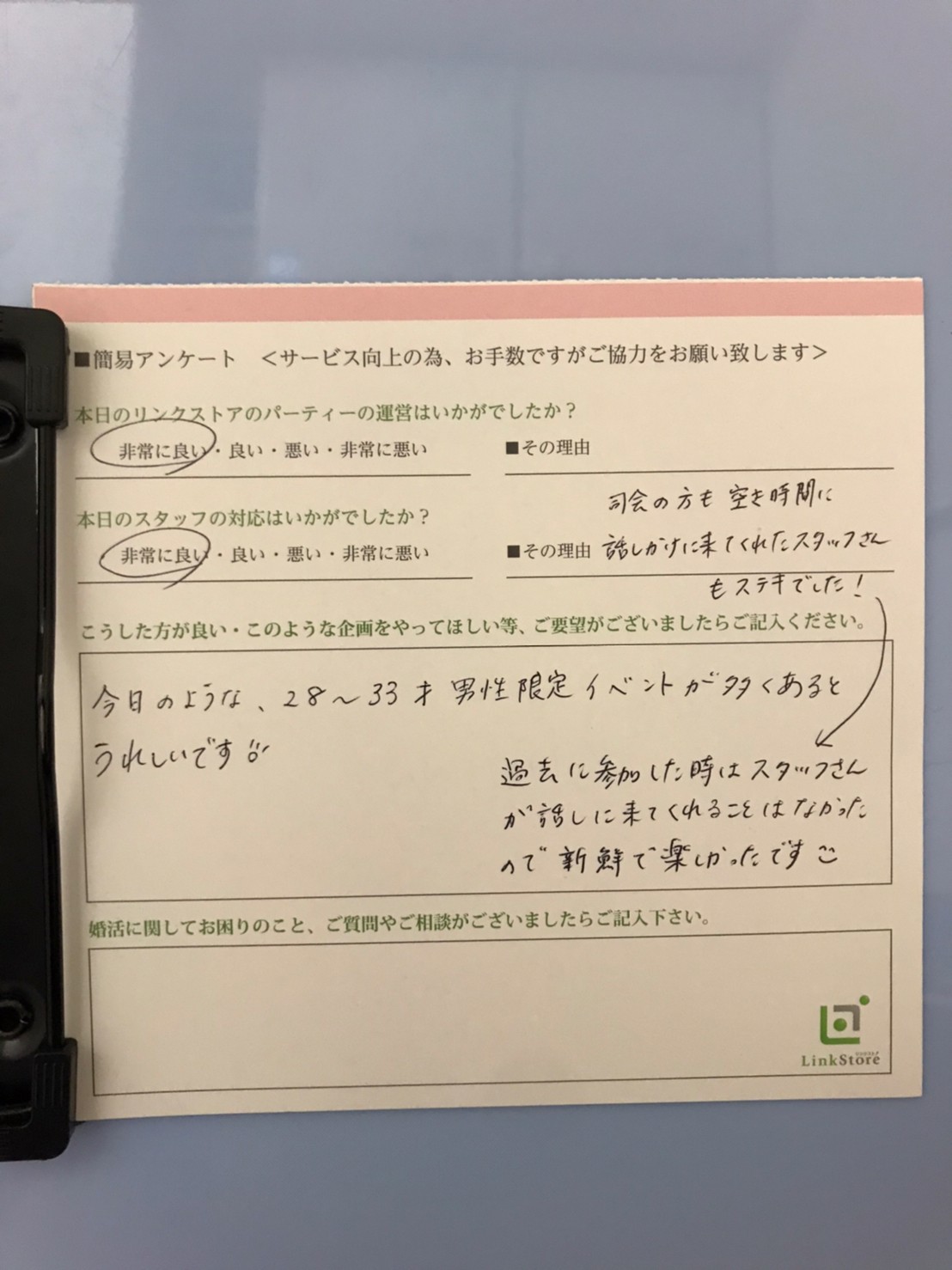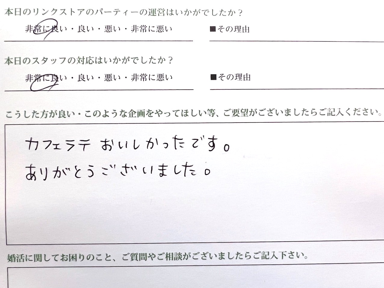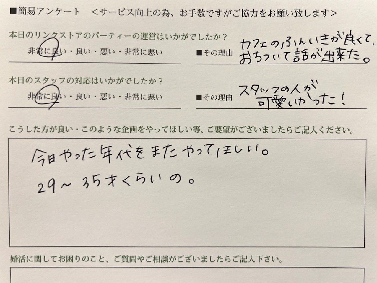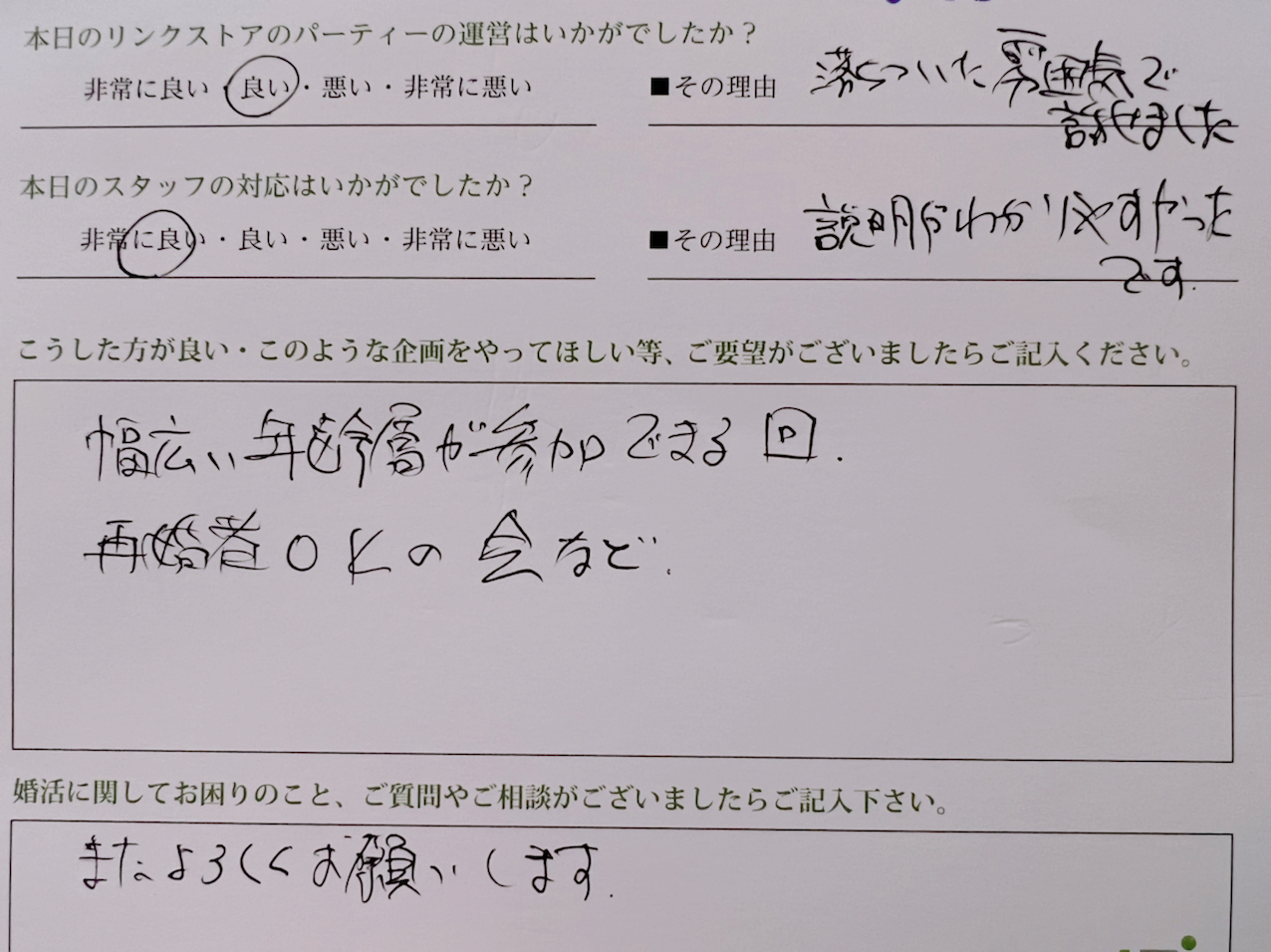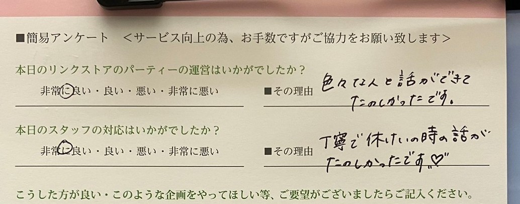 この度はリンクストア高知の婚活パーティーにご参加いただきまして誠にありがとうございます