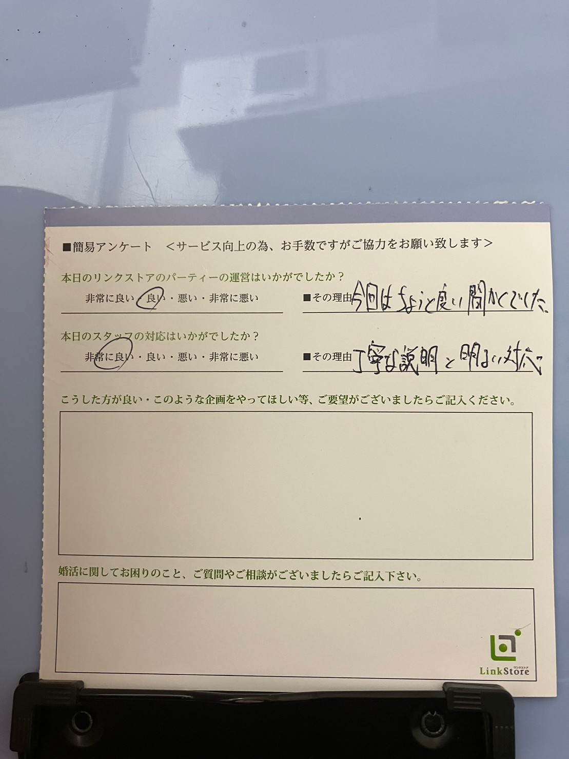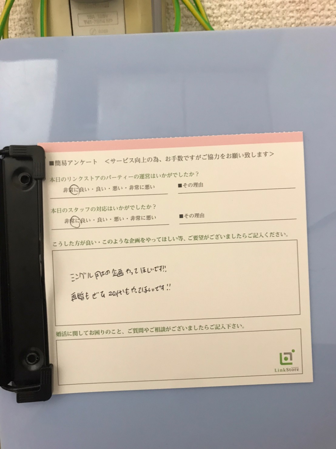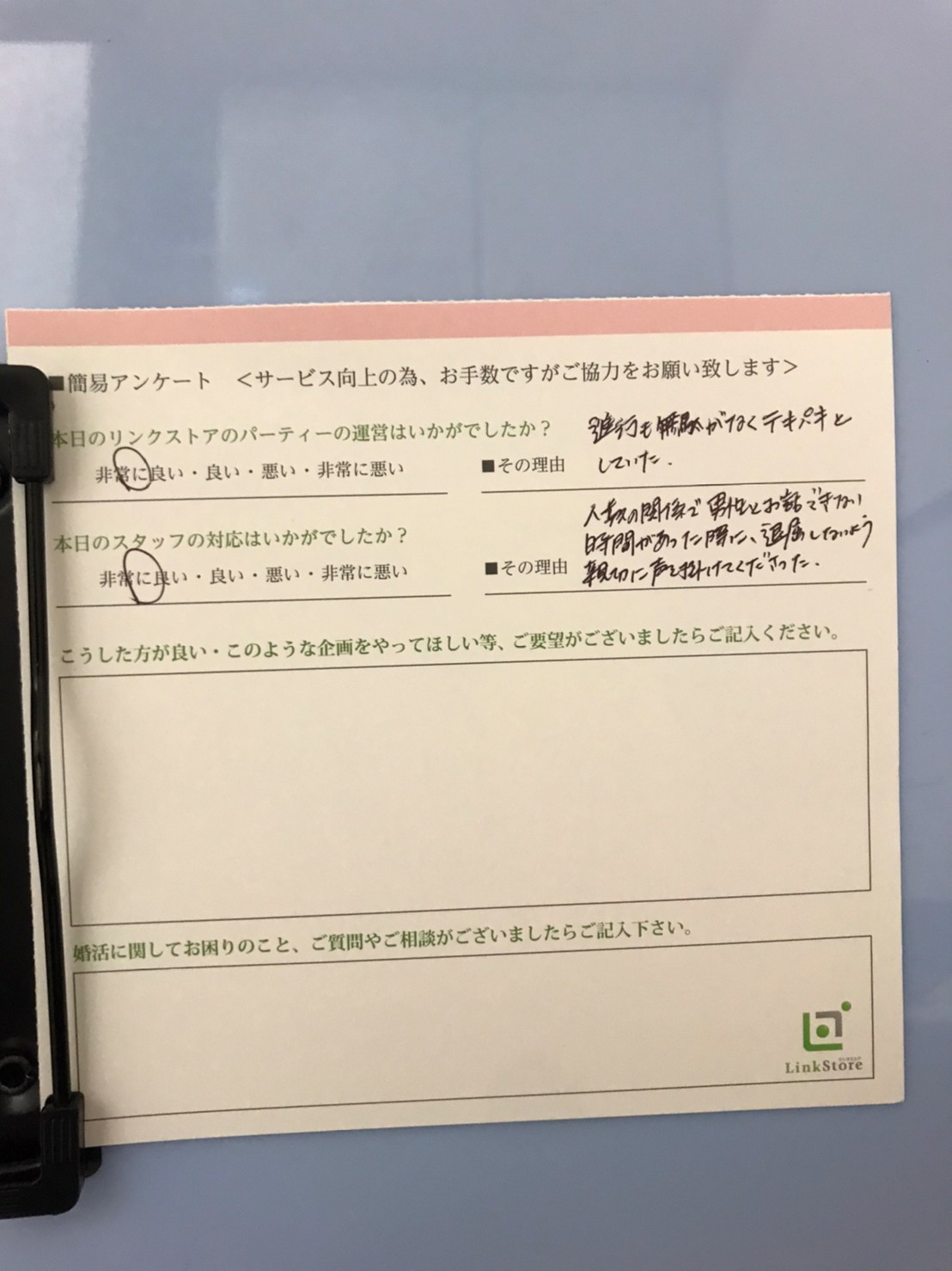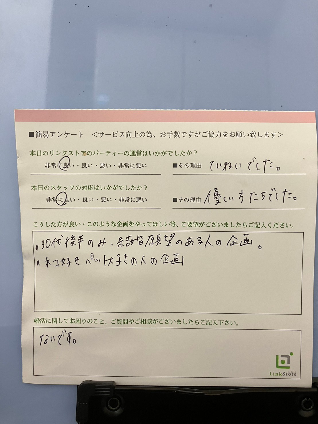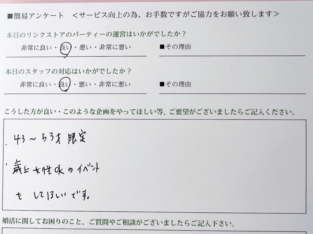 この度はリンクストア高知の婚活パーティーにご参加いただきまして誠にありがとうございます