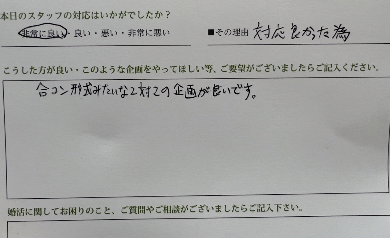 お見合い・婚活パーティーのお客様の声(口コミ)