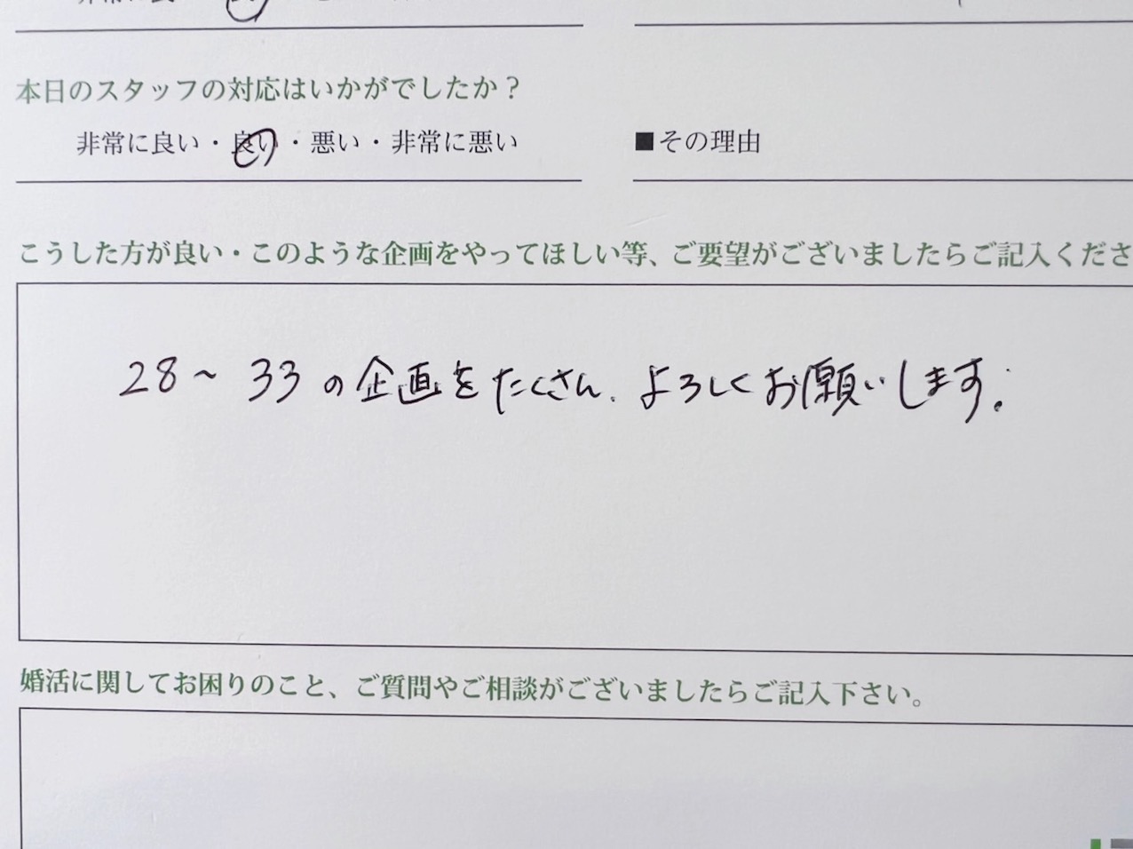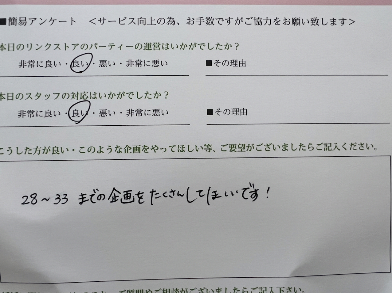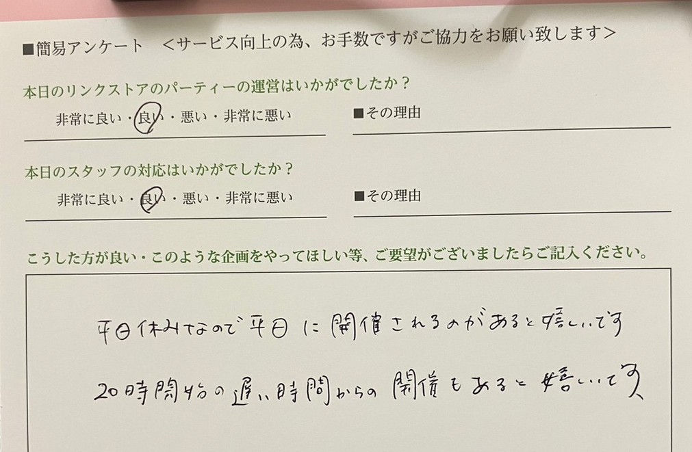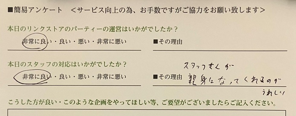 というお客様からの貴重なご意見がございましたら、是非アンケートにご記入をお願い致します