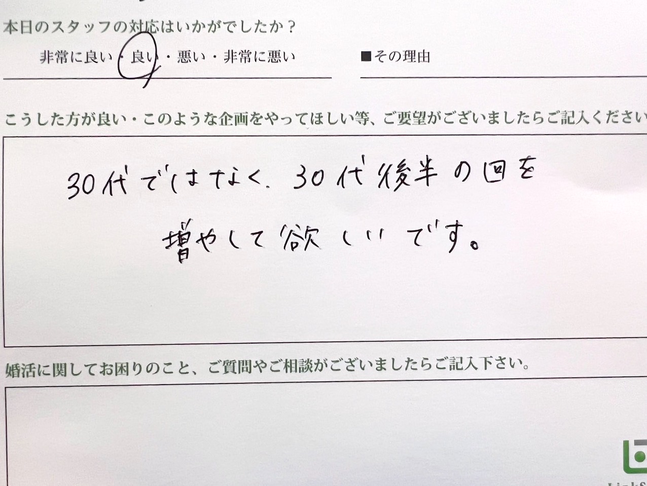 この度はリンクストア 高知エリアの婚活パーティーへご参加いただきまして誠にありがとうございます