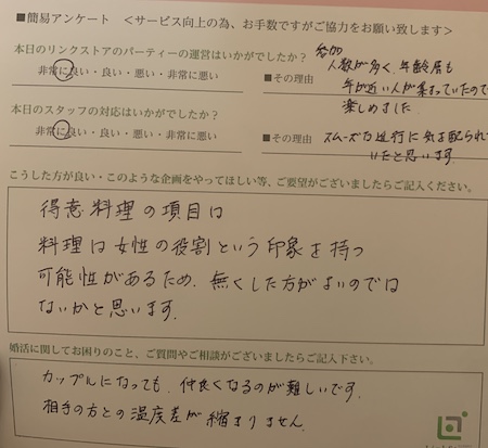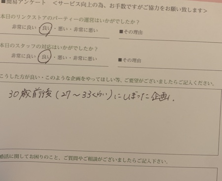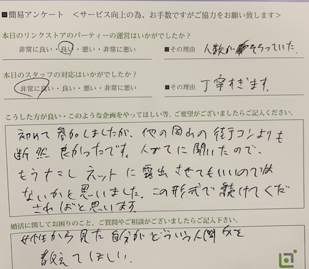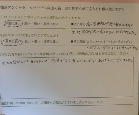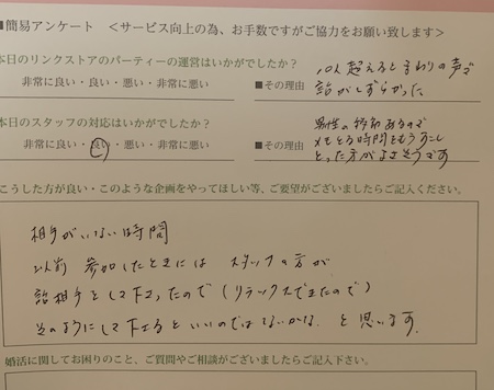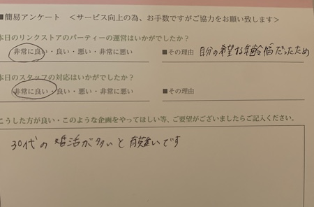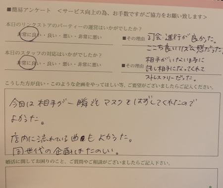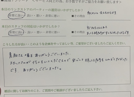 お見合い・婚活パーティーのお客様の声(口コミ)