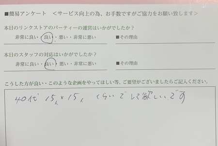 お客様の要望である40代の企画を下記にご紹介させていただきますのでぜひまたご参加くださいね