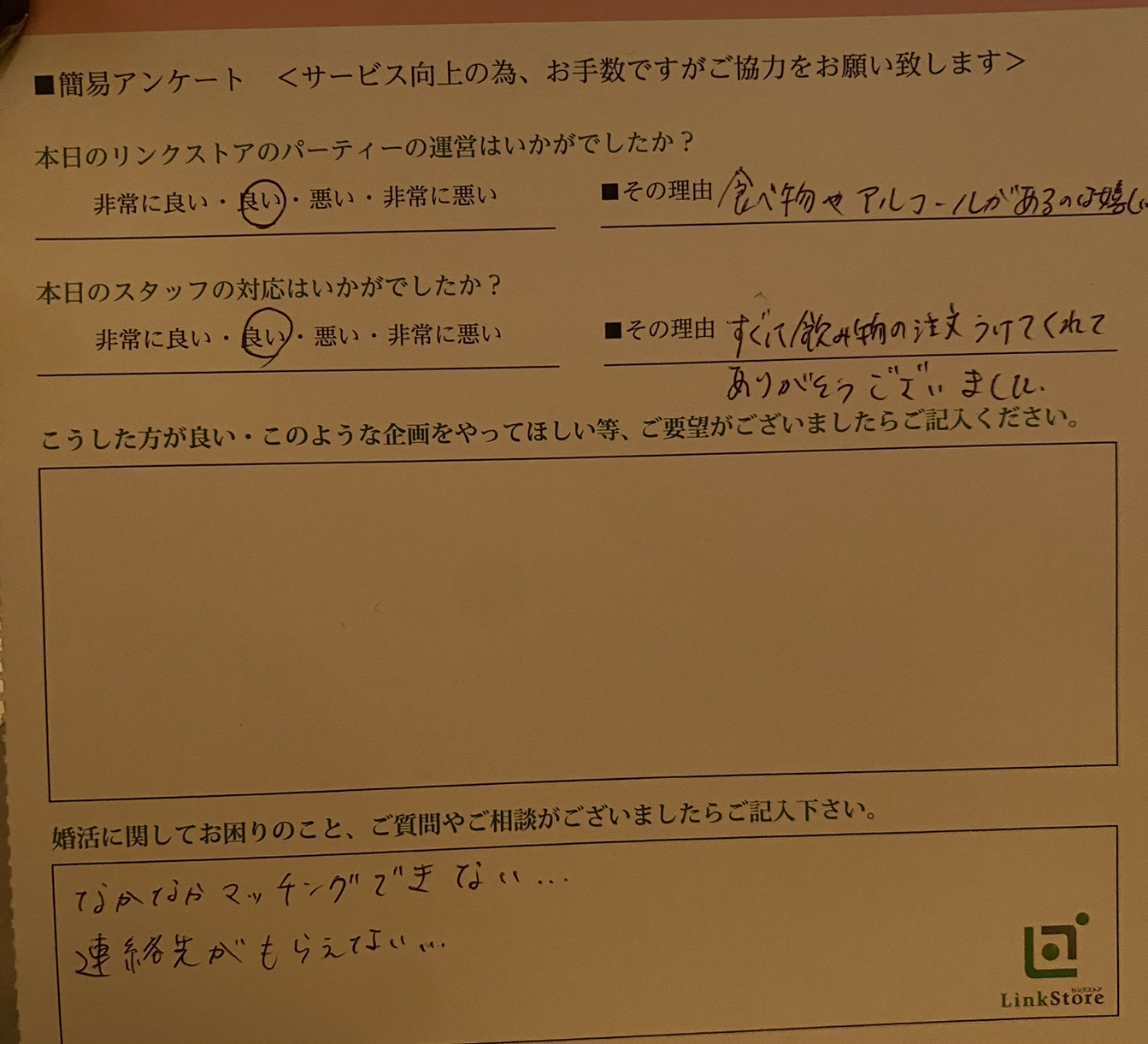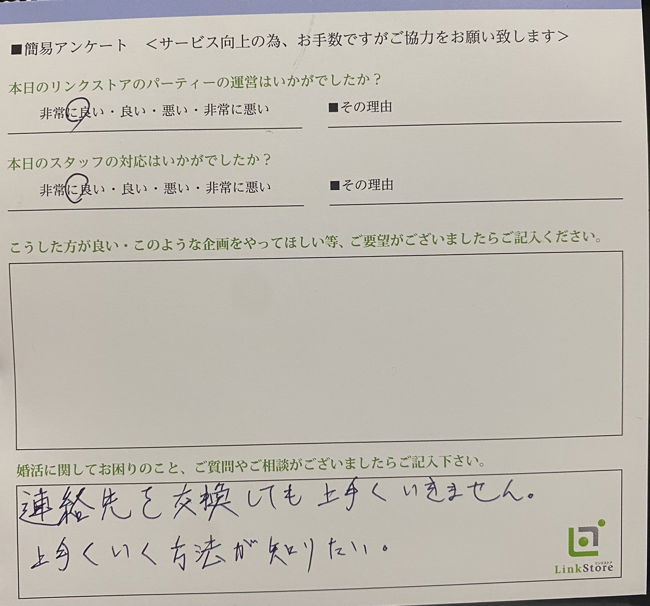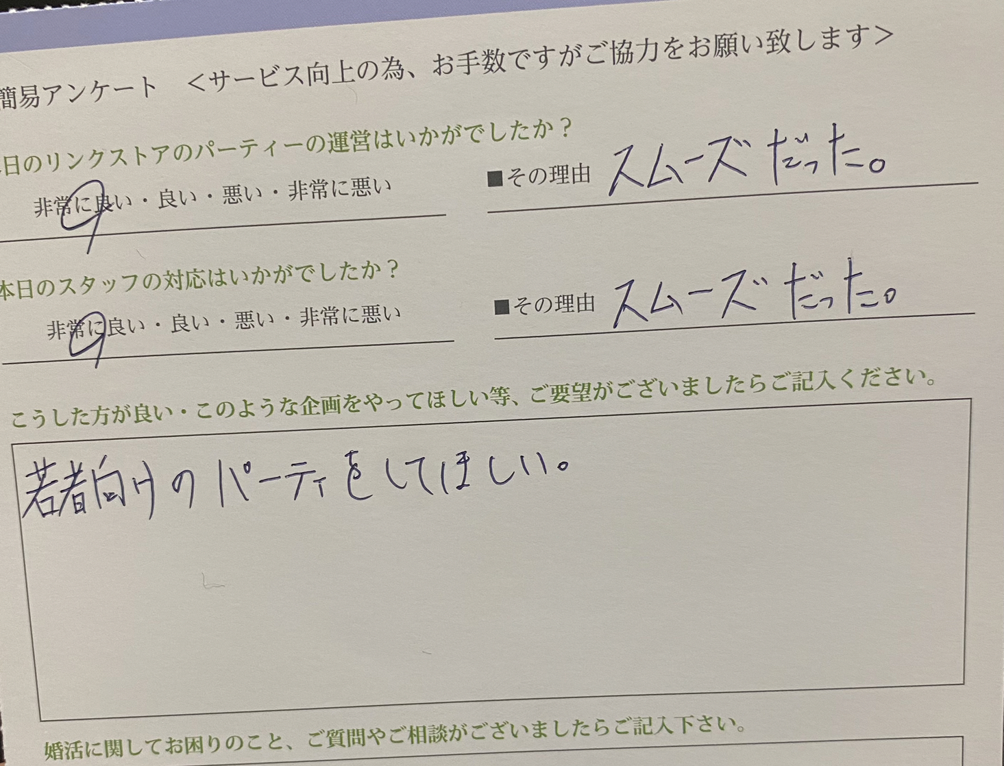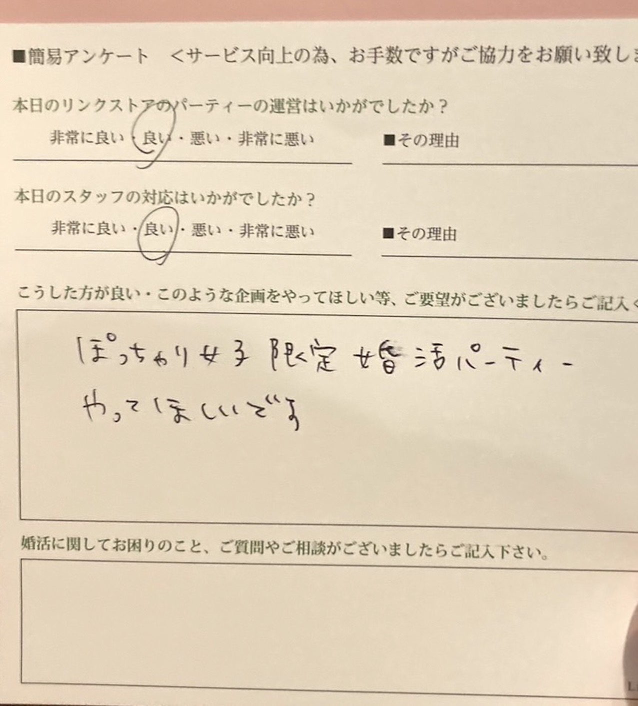 この度はリンクストア徳島の婚活パーティーにご参加いただきまして誠にありがとうございます