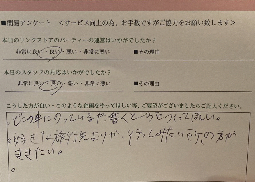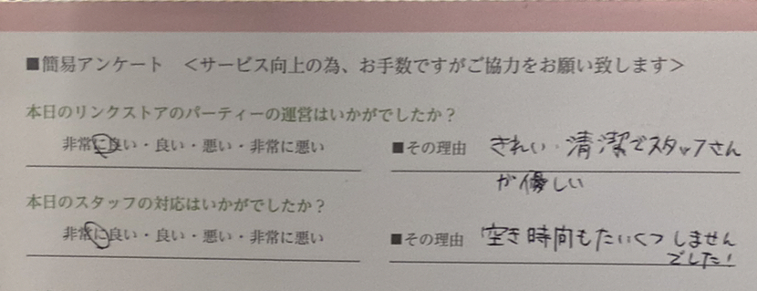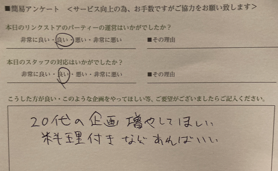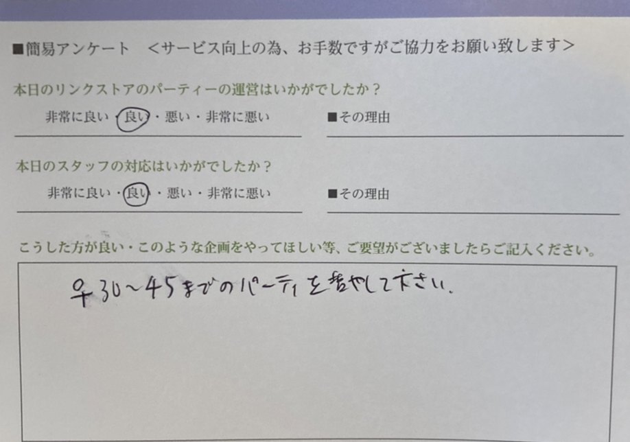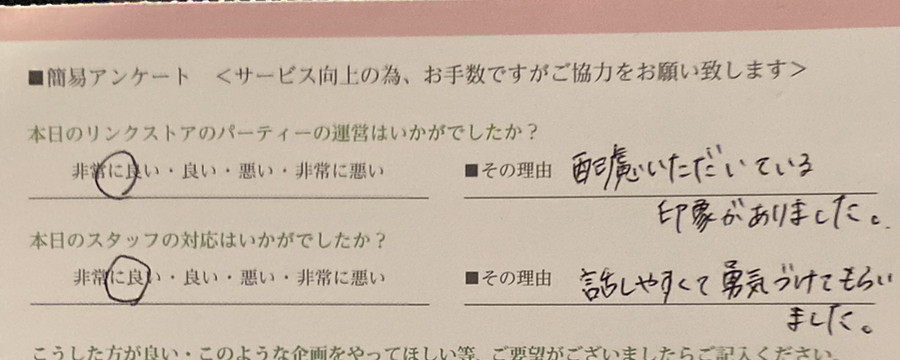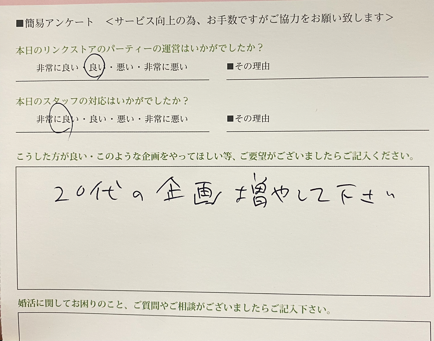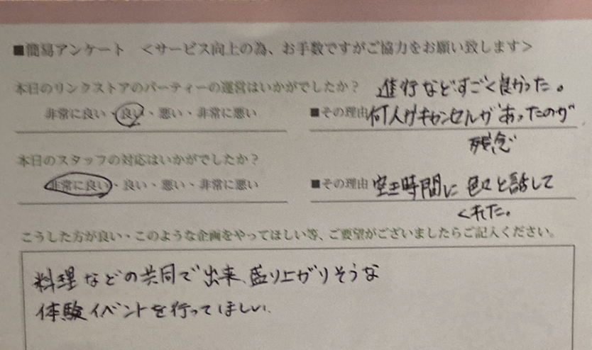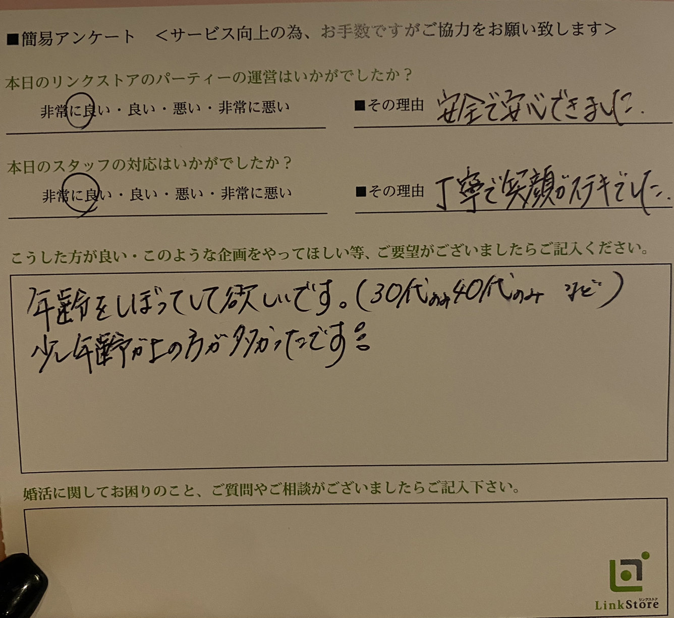 この度はリンクストア徳島の婚活パーティーにご参加いただきまして誠にありがとうございます
