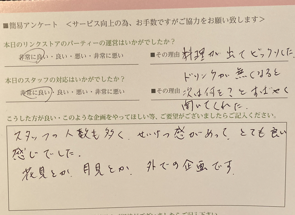 この度は、リンクストアのパーティーにご参加いただきまして、ありがとうございます