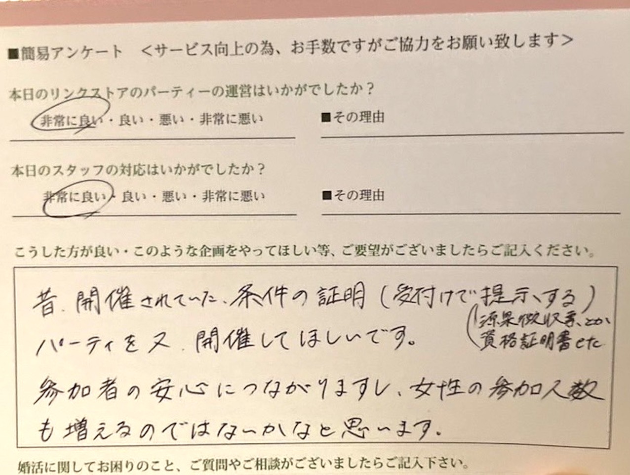 お見合い・婚活パーティーのお客様の声(口コミ)